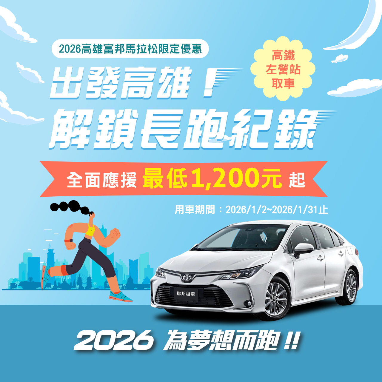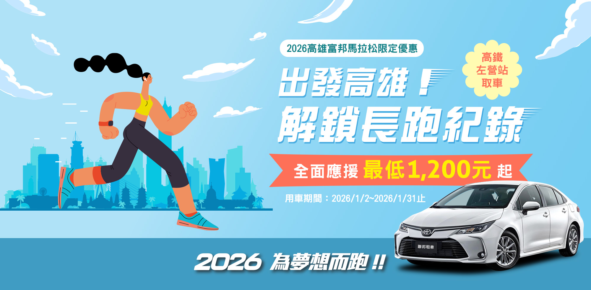 115年_出發高雄!解鎖長跑紀錄_限高鐵左營站用車_全車系_連租兩日起5折